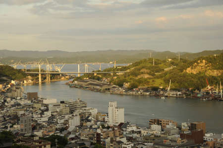 Yamaguchi, Japan - December 2, 2023 : Shimonoseki Kanmon Straits and city view