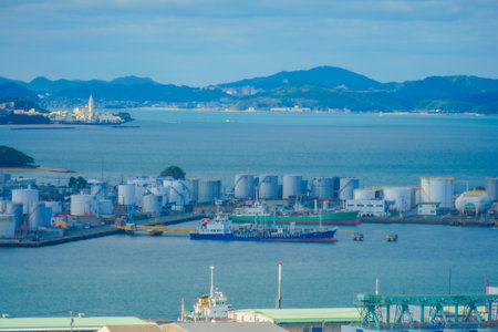 Factory scenery in the Kitakyushu industrial area of the blue sky