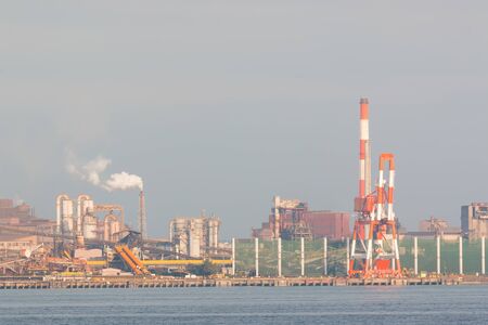 Landscape of industry at port with sea and sky.