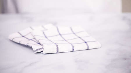kitchen towel on old wooden table in the kitchen