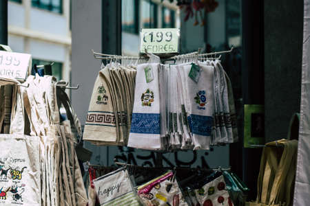 Limassol Cyprus May 21, 2020 Closeup of decorative objects sold in a souvenir shop in Limassol in Cyprus island