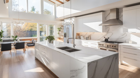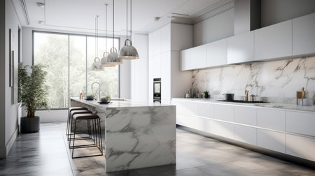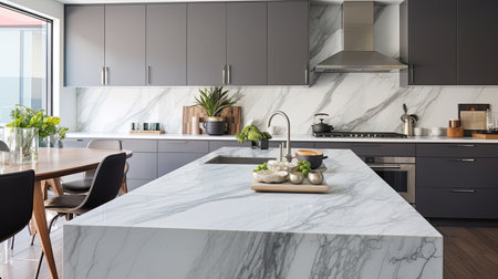 Modern kitchen design with luxury marble island generated by artificial intelligence