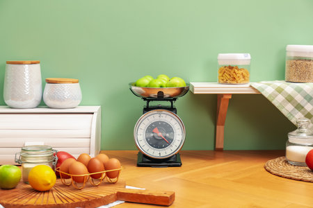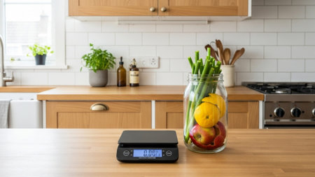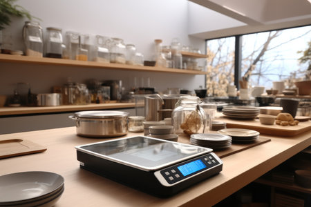 Close up of electronic kitchen scalele countertop in modern kitchen
