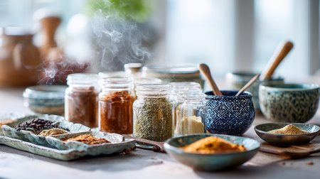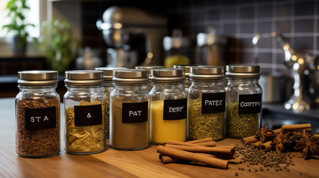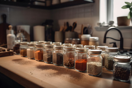 Aromatic Orchestration. Kitchen Jars Brimming with Spices and Seasonings. Generative AI