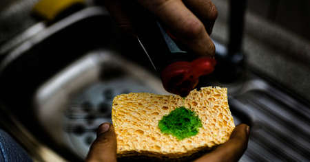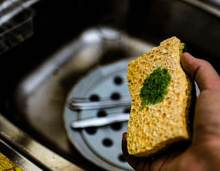 Old abrasive used sponges for household cleaning of kitchen: attention, they can hide dangerous bacteria