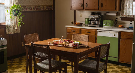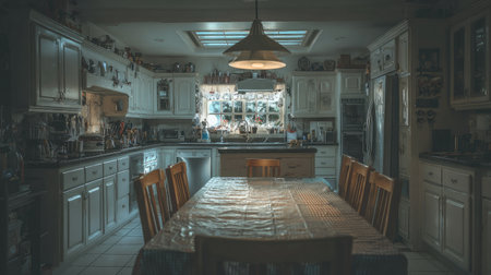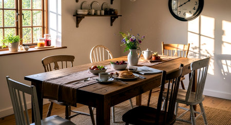 the dining room table looks naturally cluttered, with items placed casually generative ai