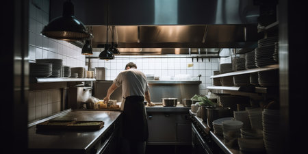 Chef cooking food in the kitchen. distinct generative AI image.