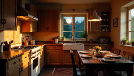 Cozy kitchen with fresh groceries and warm light inviting family bonding moments