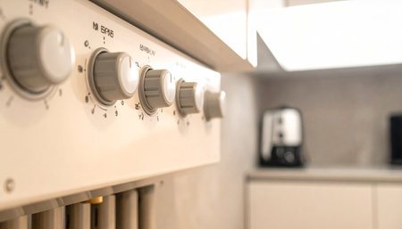 Close up of an electric stove in the kitchen. Shallow depth of field.