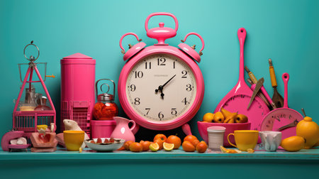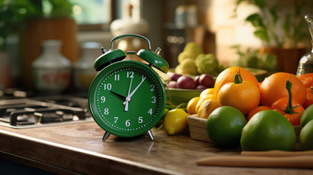 vegetables green alarm clock illustration color vibrant, hues produce, visually appealing vegetables green alarm clock