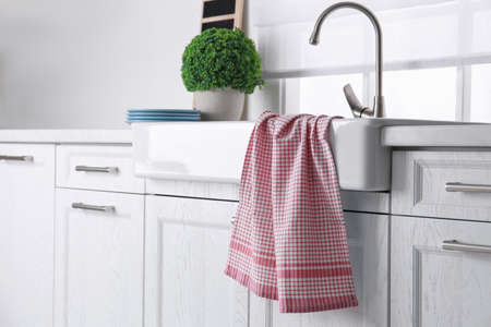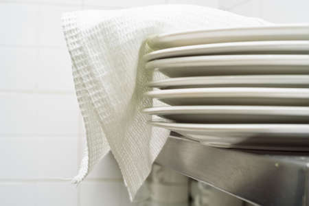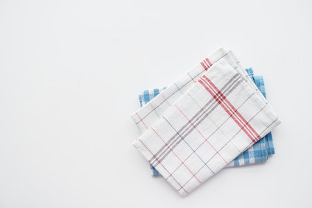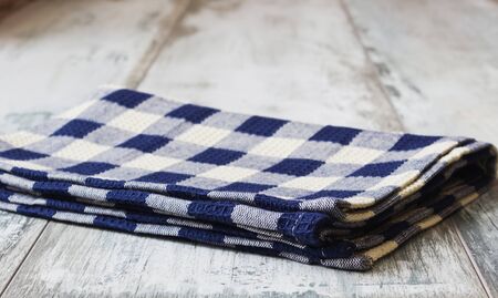 kitchen towel on a white painted wooden background. selective focus. copy space background