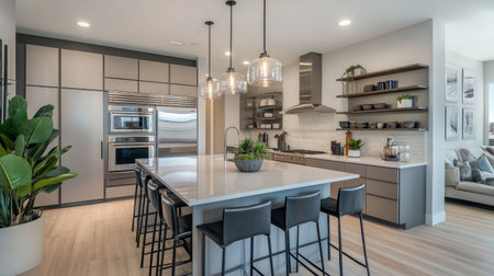 This is a Modern Kitchen Interior that features a Sleek Design along with a Minimalist Aesthetic