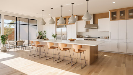 Modern kitchen interior in Scandinavian style, minimalist and contemporary design