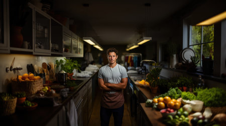 Portrait Of A Happy Young Man Standing In The Kitchen At Home