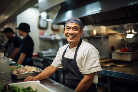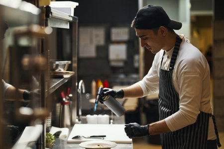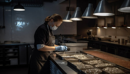Expert chef prepares food in commercial kitchen workshop generated by artificial intelligence