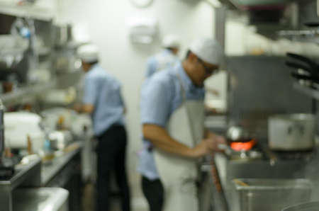 Blurred restaurant kitchen,Chef cooking food and preparing in japan shop