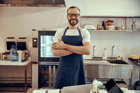 Portrait of a smiling chef standing in the kitchen of a restaurant