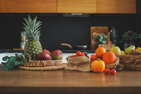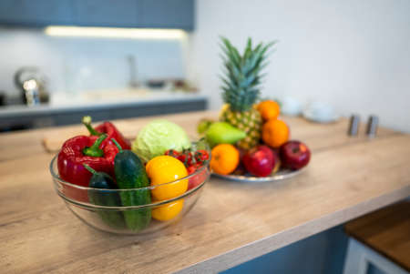 Fruits And Vegetables On The Table Of Modern Kitchen