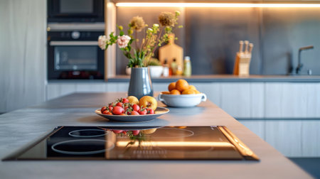 Modern kitchen interior design with granite countertop Digital composite on induction hob in modern kitchen