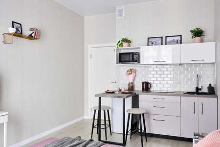 interior design. interior photography of an apartment for rent. One-room apartment with a simple and cozy design. High quality photo