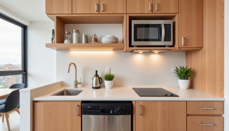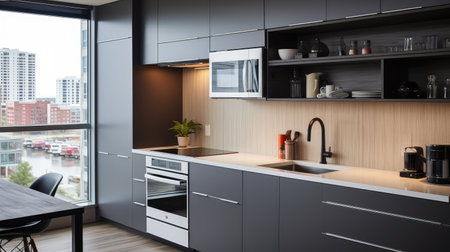 Stylish modern condo kitchen with smart storage solutions, urban living. generated by ai
