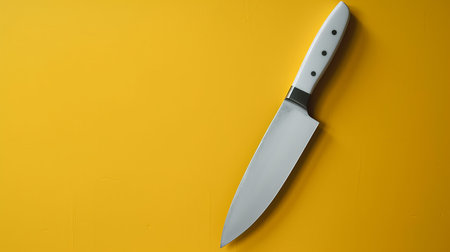 Minimal concept of a bright yellow kitchen knife on a yellow background. The central composition of stylish knives. flat lay.
