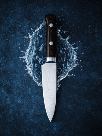 A sleek set of stainless steel kitchen knives, gleaming under soft light, promises precision and efficiency in culinary tasks