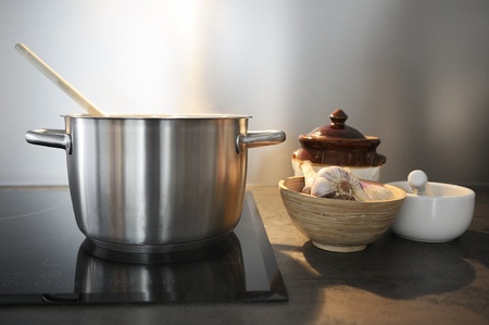 Big pot in kitchen with induction stove