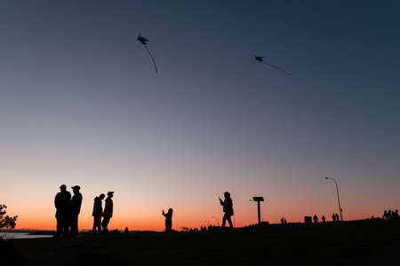 Sydney, Australia - July 4, 2020: Silhouette of people in the park during sunset time.