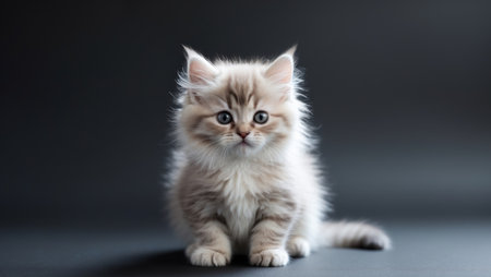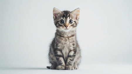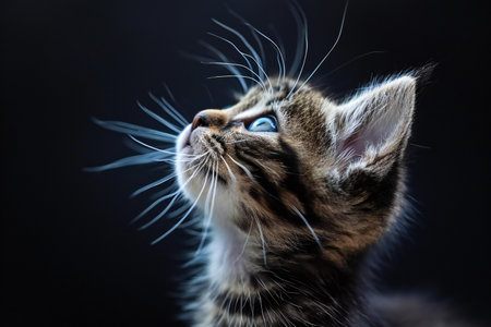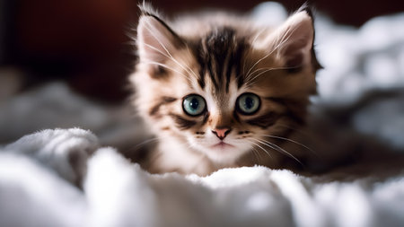 A kitten is looking up at the camera with its eyes wide open. Generative AI