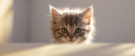 AI Generated. Curious kitten observing something in the sunlight from the shadows
