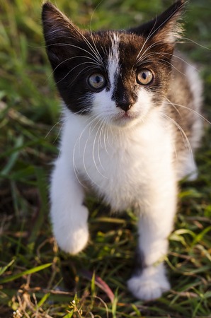 Portrait of a little kitten in outdoors.