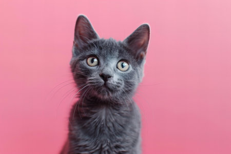 Portrait of a gray cat on a pink background, high quality, high resolution