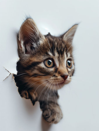 This adorable tabby kitten exudes charm with its big eyes and playful demeanor. Perfect for capturing the joy and innocence of a young pet.