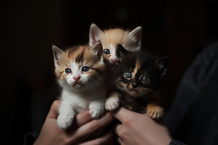 Hugging Many Kittens, a Bouquet of Kittens in Hands, Hands Hugs a Lot of Kittens, Drawing Imitation, Abstract Generative AI Illustration
