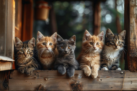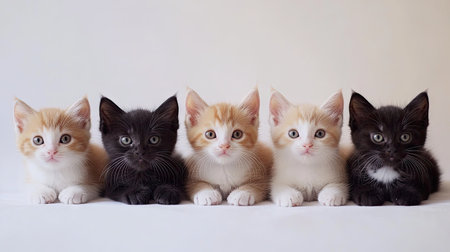 A charming image of five adorable kittens lined up, showcasing their unique colors and playful expressions. Perfect for cat lovers and animal enthusiasts.