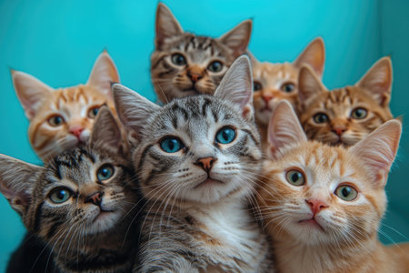 An AI generated illustration of a group of tabby cats looking at the camera