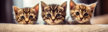 Cute tabby kittens looking at camera. Horizontal banner with AI-Generated Images