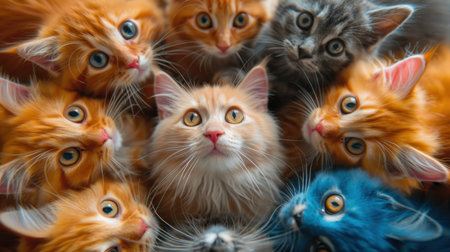 A group of beautiful cats . Portrait of colorful cats looking at the camera.