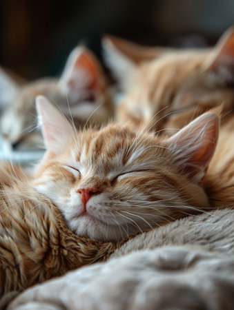 Three cute cats sleeping - adorable felines resting peacefully in a calm and serene slumber