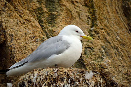 Kittiwake bird in a rock in Hafnarholmi in east Iceland