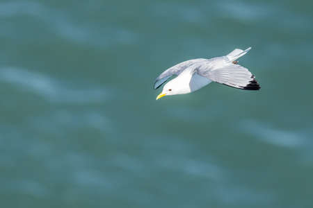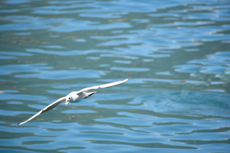 A Kittiwake Rissa tridactyla flying above the sea in Ligurian Mediterranean sea rare sighting
