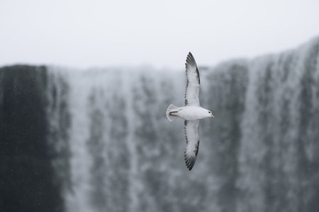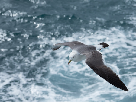 Northern fulmar in flight over water in Aberdour, Fife Scotland