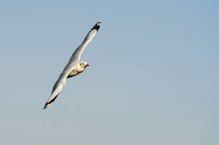 The black-headed gull (Chroicocephalus ridibundus) (Larus ridibundus). Bird in flight with its wings spread wide, Black Sea