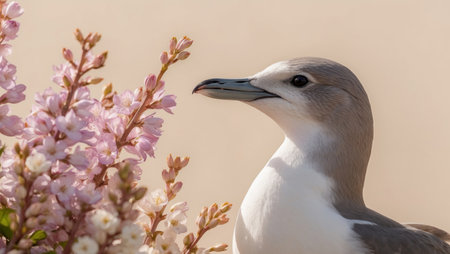 AI Generated. Blooming Thrift Flowers Amidst a Northern Fulmar Call