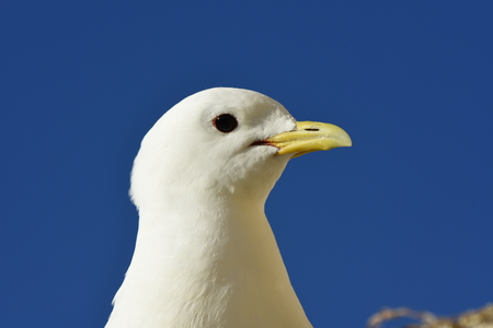 Black legged Kittiwake (rissa tridactyla) colony in Norway. Genus Rissa
