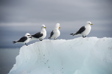 Seagulls sitting on the cliff, Barents sea, Arctic ocean, Kola Peninsula, Russia