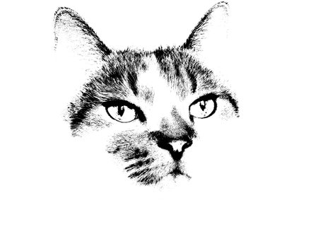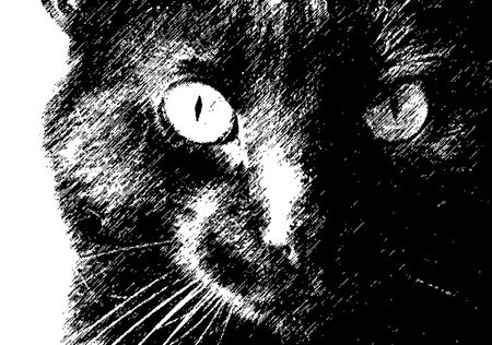 A close-up of a black cat's face in a sketchy style. Useful for a logo or background, or for a Halloween illustration.