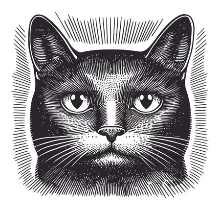 This detailed vector illustration features a striking black cat with a bold design. Radiant lines enhance the elegant features, making it a captivating artwork.