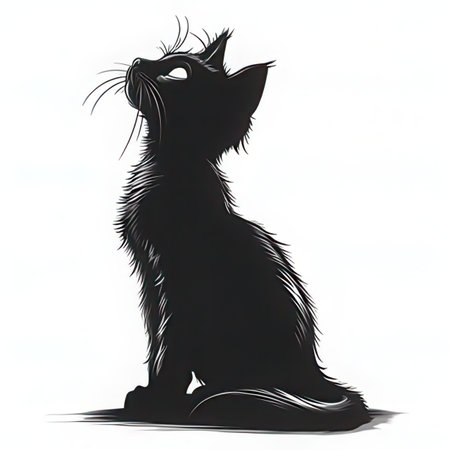 Vector illustration of a cat in black silhouette against a clean white background, capturing graceful forms.